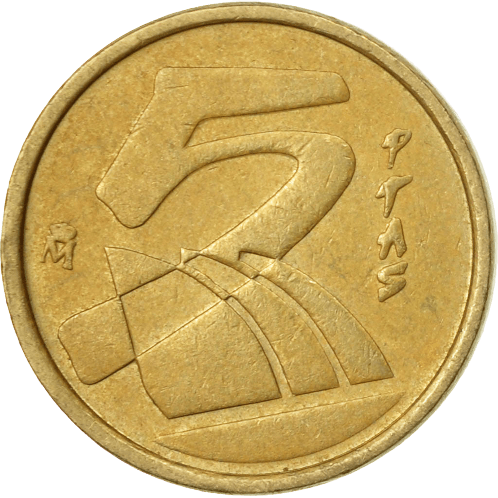 El valor de 5 pesetas a día de hoy equivale a 0,03 €, que es la vuelta que no quieres cuando compras algo.