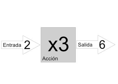 Es importante saber que las cajas de acción están formadas por tres partes: la entrada de datos, la acción propiamente dicha y la salida de datos. Esto es, a cada caja le entran una serie de datos, dentro de la caja se producirá la acción de la caja y saldrá ya modificado hacia la siguiente acción. Por ejemplo, tenemos el número 2, una caja que multipla por 6; la entrada es el 2, entra a la caja dónde tiene lugar la acción es decir el 2 se multipicla por 3, por lo que el resultado será un 6 en la salida. En el caso de encadenar varias cajas de acción la salida de una caja es la entrada de la siguiente.
