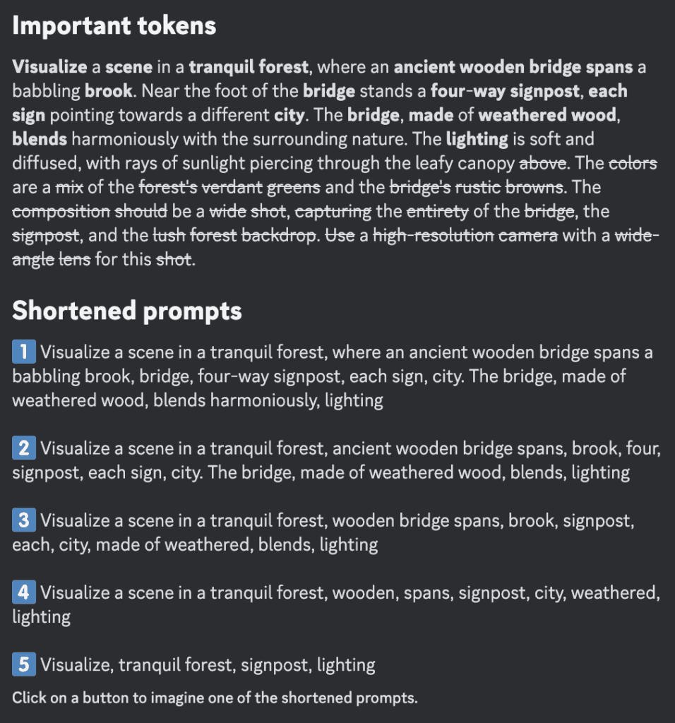 Es decir, le das una descripción mediante este comando y la resumirá eliminando aquellas palabras que no van a tener impacto sobre la imagen.