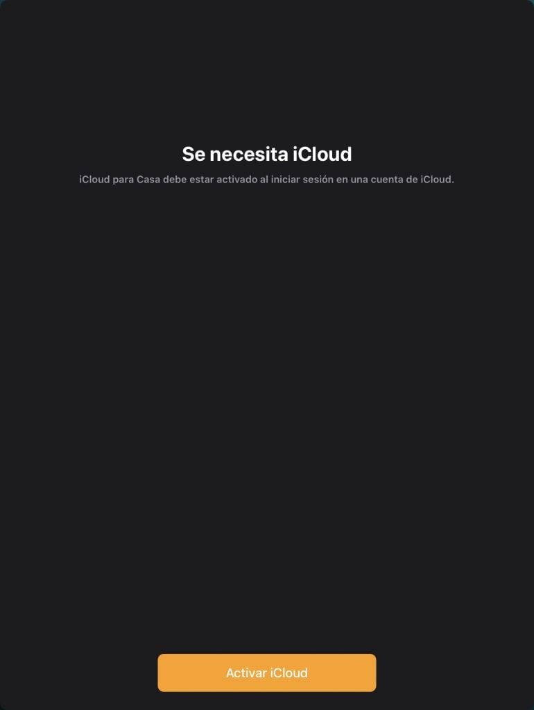 Luego vuelve a abrir la app «Casa» y te aparecerá un mensaje diciendo que necesitas activar iCloud para que funcione todo correctamente. Acepta el mensaje e iCloud para Casa se activará por si solo.
