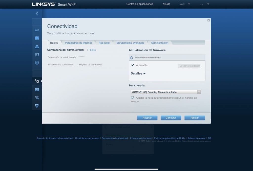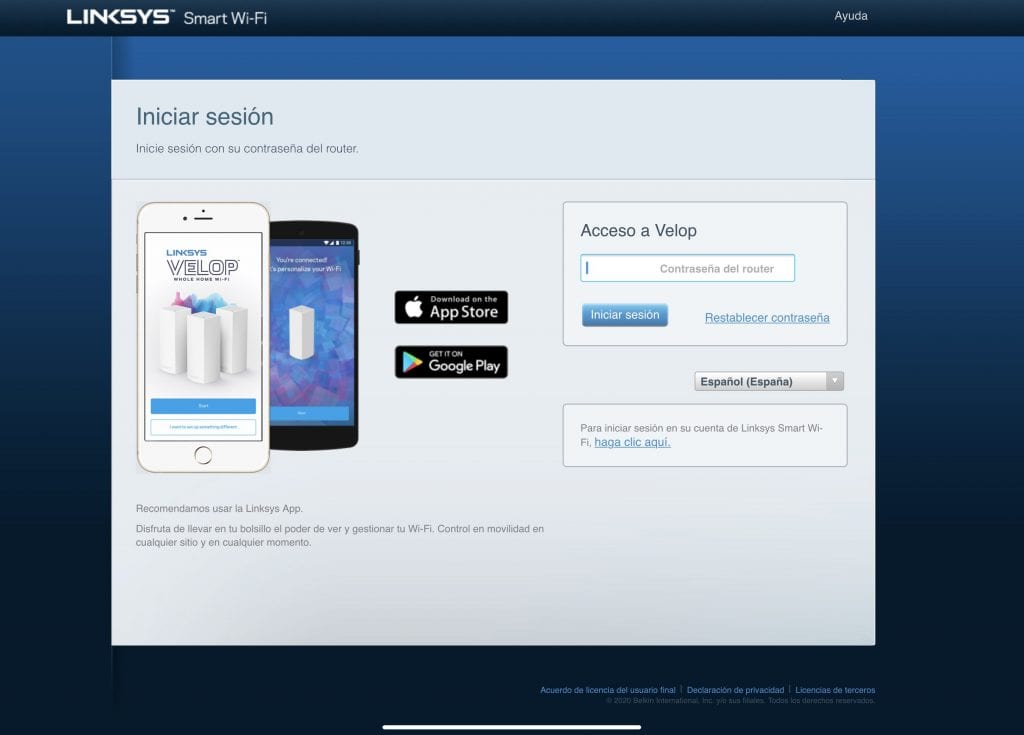 Puedes acceder a la zona de administración bien con la contraseña que hay bajo el router o con tu usuario de Linksys que creaste al configurar el router con la app para tu teléfono.