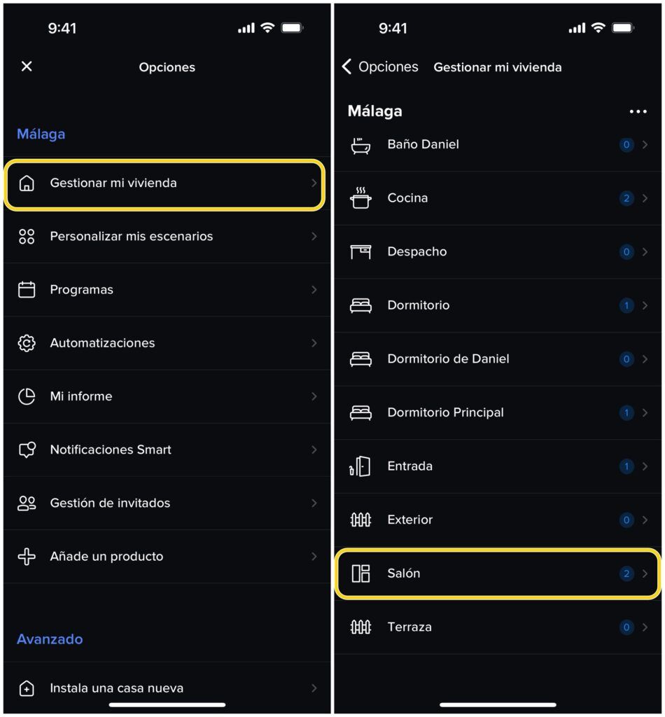 Pulsa en gestionar mi vivienda y busca el hub en la habitación donde lo tengas instalado, en mi caso, el salón.